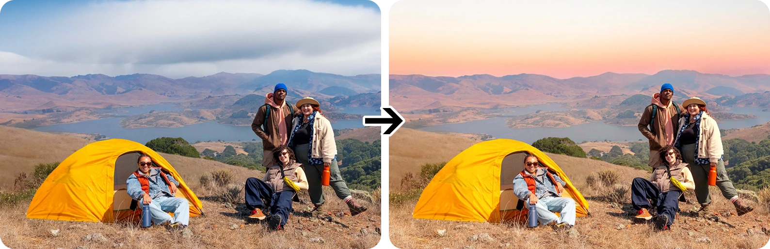 Elevate your photos by changing the sky to match your mood or fantasy, instantly transforming any backdrop into your personal version.