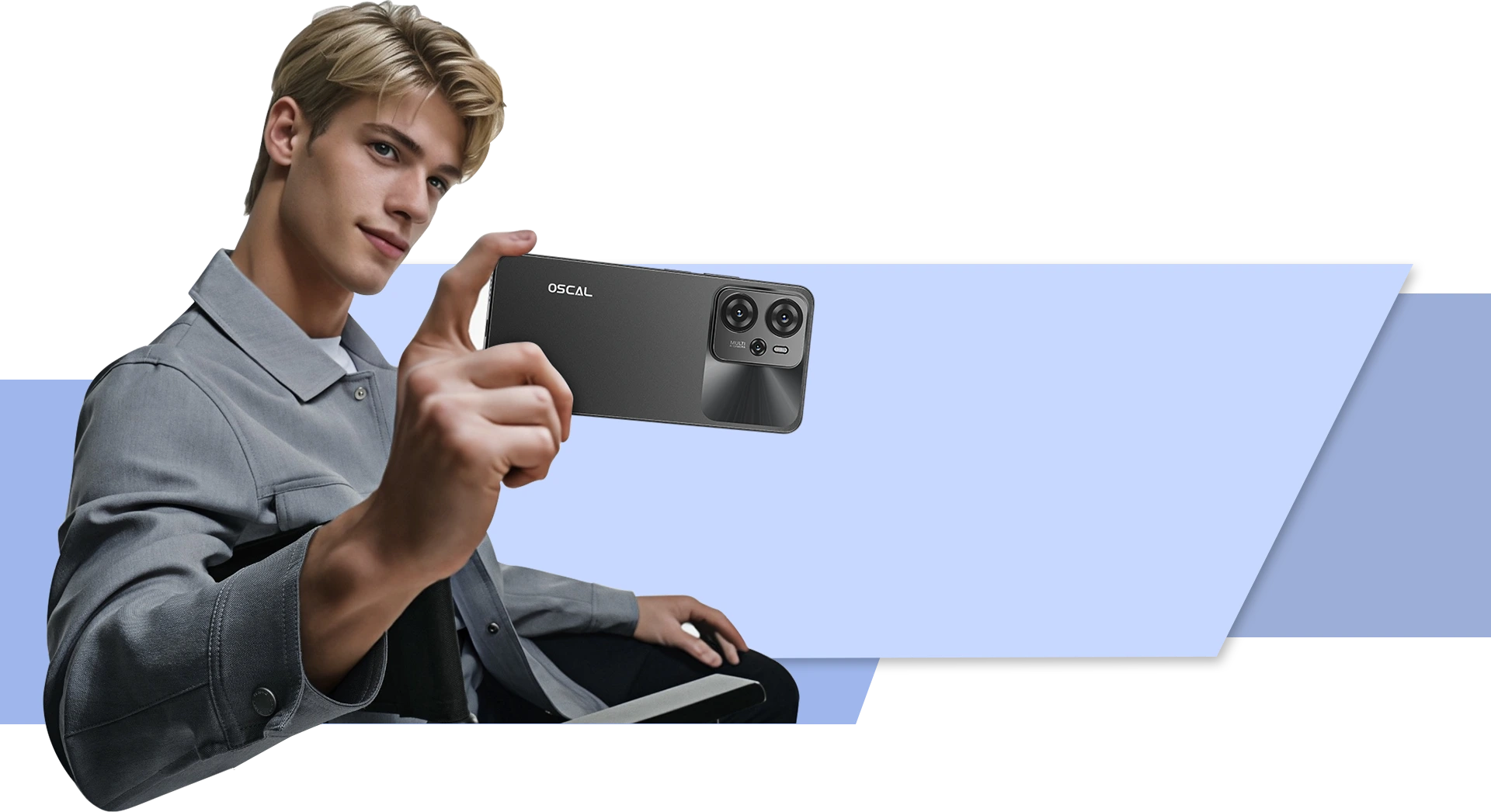 Featuring an 8MP Samsung self-facing AI camera, OSCAL TIGER 13 captures crystal clear selfies with all your skin tones naturally restored